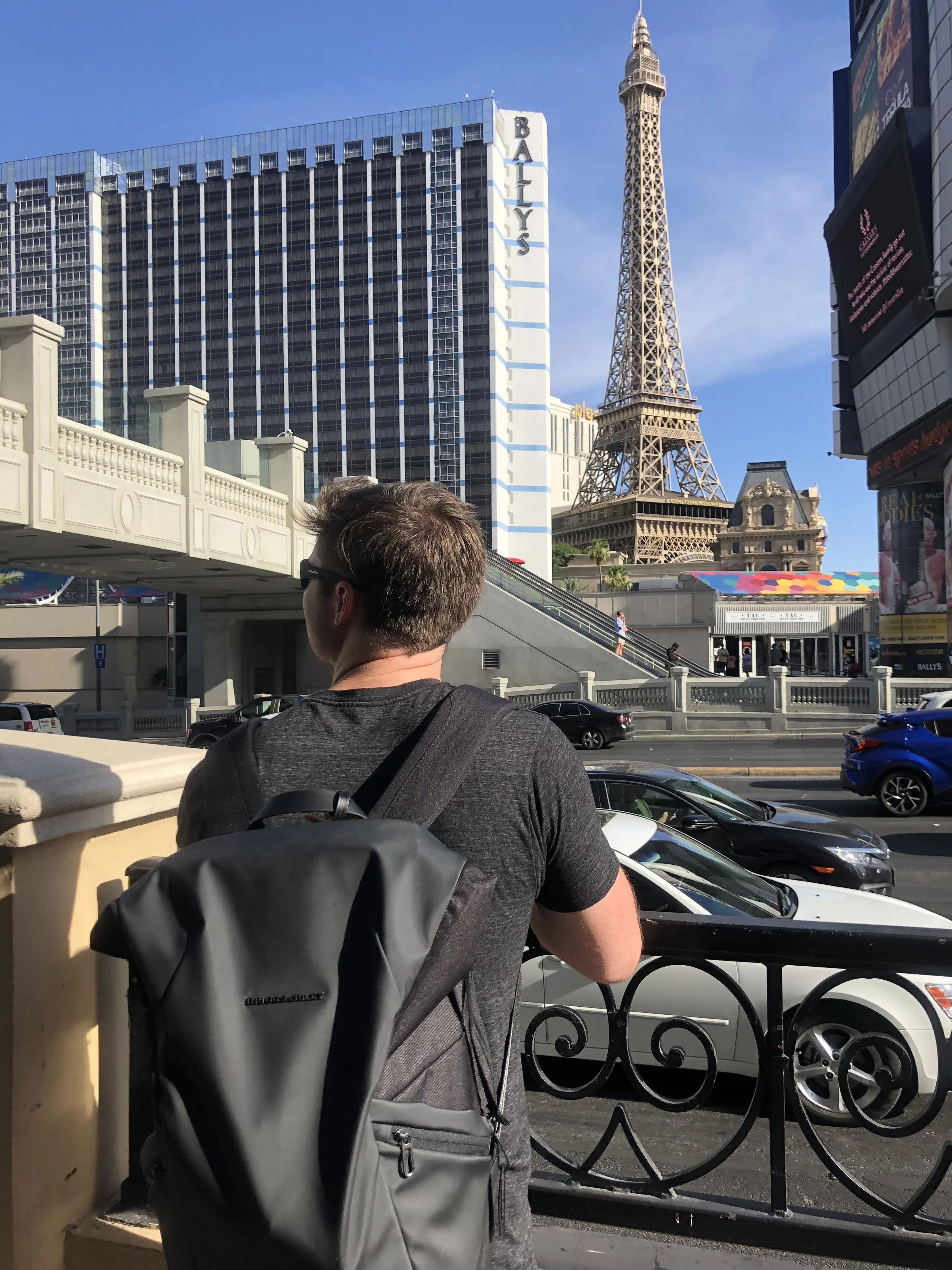 Caught in a moment of reflection, I stand in awe of the dazzling Las Vegas skyline.